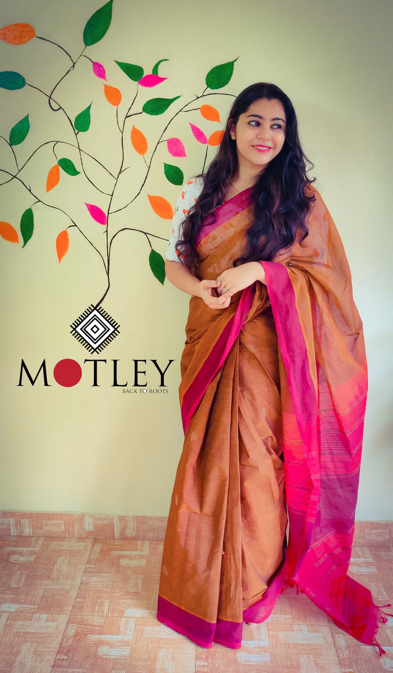 Organic Ecofriendly Alovera Fibre Cotton Saree made from ALovera Fibres. The colors used are Toxic free vegetable and Herbal Dyes.