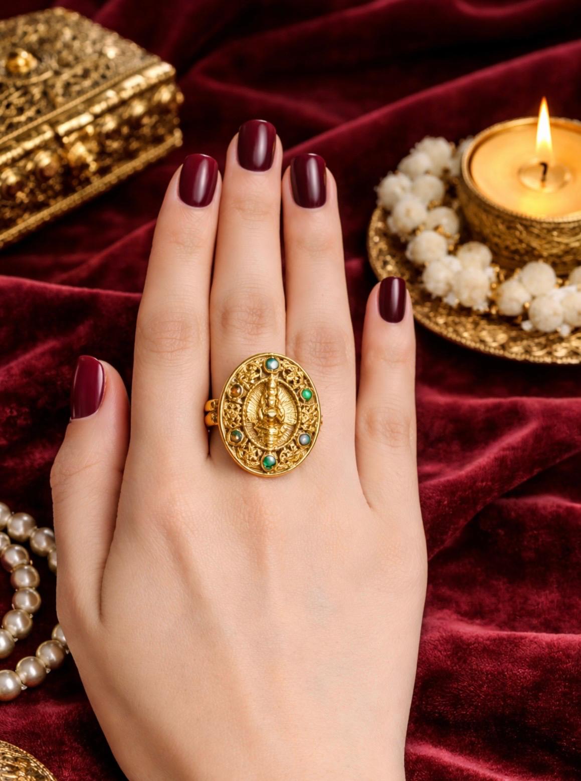 Make a bold style statement with this stunning gold statement ring, designed to add instant elegance and sophistication to your look. Featuring a striking design with a rich gold finish, this ring is crafted to stand out while complementing both traditional and modern outfits.