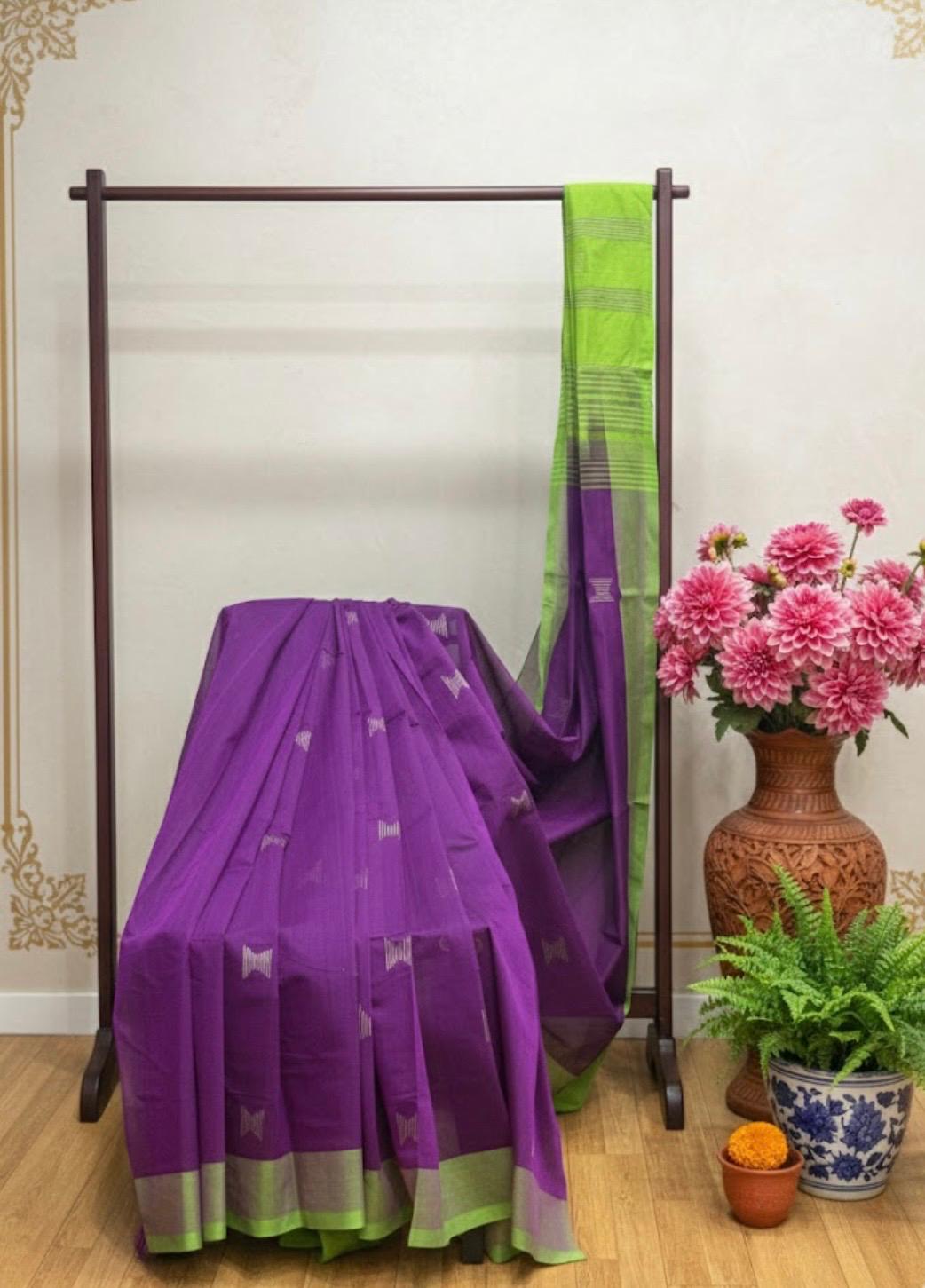 Handloom alovera cotton saree crafted with traditional weaving techniques for comfort and everyday elegance.