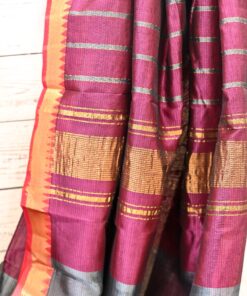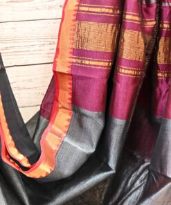 Handblock Printed Chanderi Cotton Silk Saree with Color Tassles