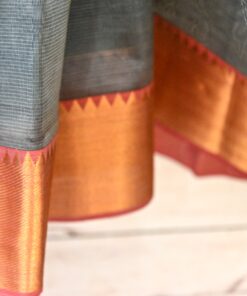 Handloom Linen with Jamdhani Work - Sky blue and Lemon Green Saree