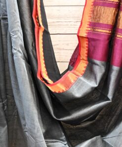 Handblock Printed Indigo Chanderi Silk Cotton With Color tassles
